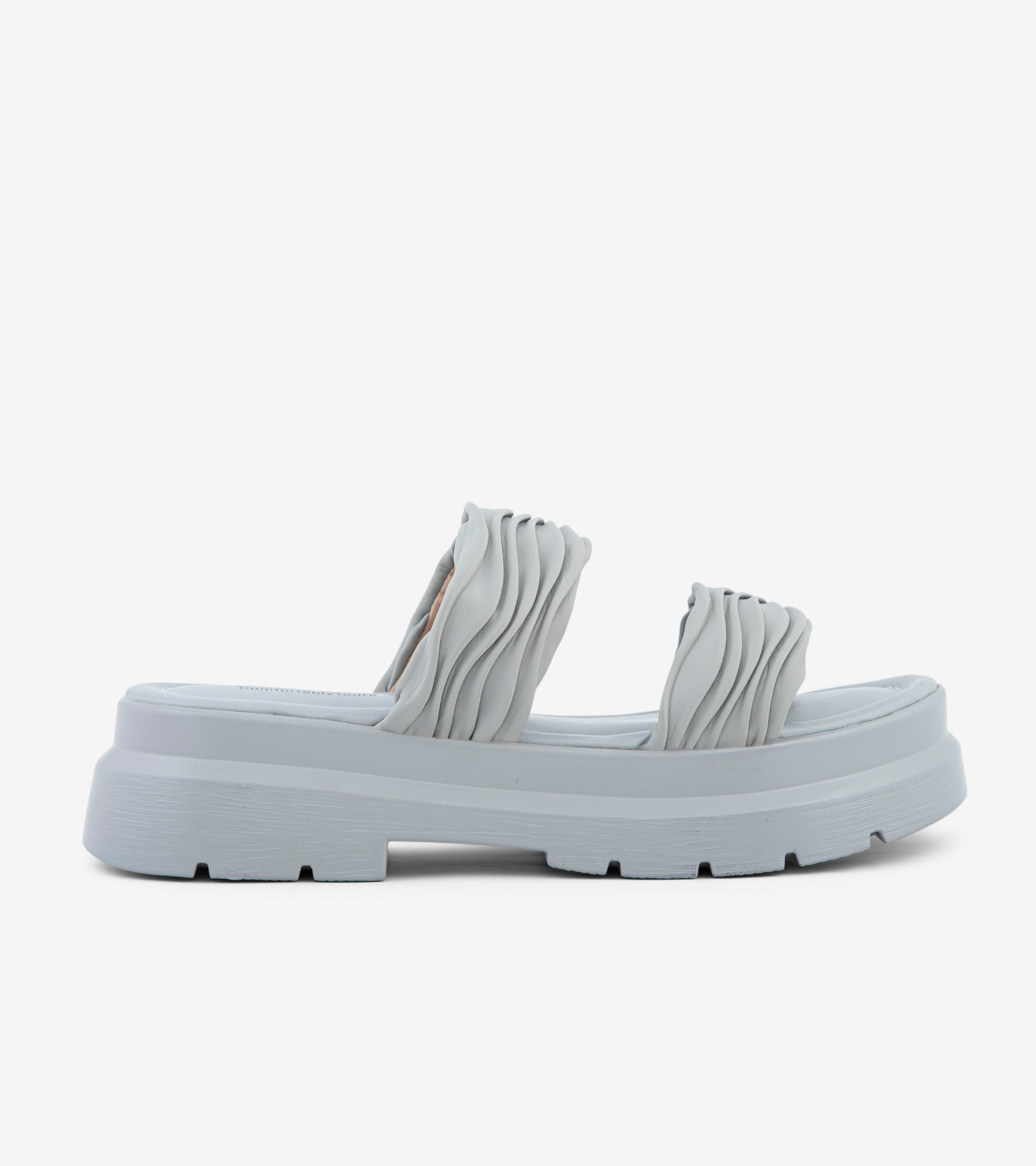 This women's sandal features textured PU uppers in contrasting colors, combining style with durability. The cushioned insole provides enhanced support for all-day comfort. Its lightweight PU outsole is designed for durability and slip resistance, ensuring safe and comfortable wear in various conditions. Ideal for those seeking both fashion and functionality.
